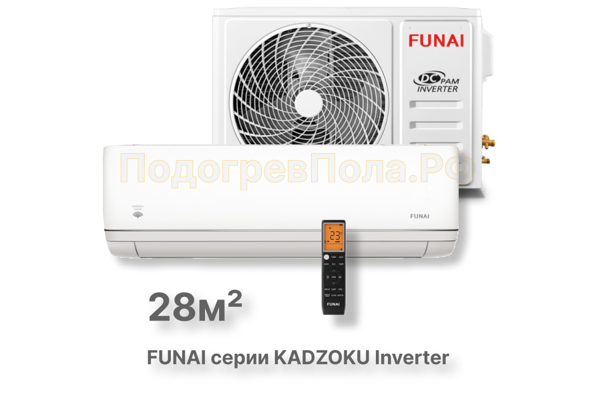 Купить FUNAI Инверторные сплит системы серии KADZOKU Inverter RAC-I-KD30HP.D01 по выгодной цене вы можете в нашем магазине "ПодогревПола.Рф" в г. Новосибирске.